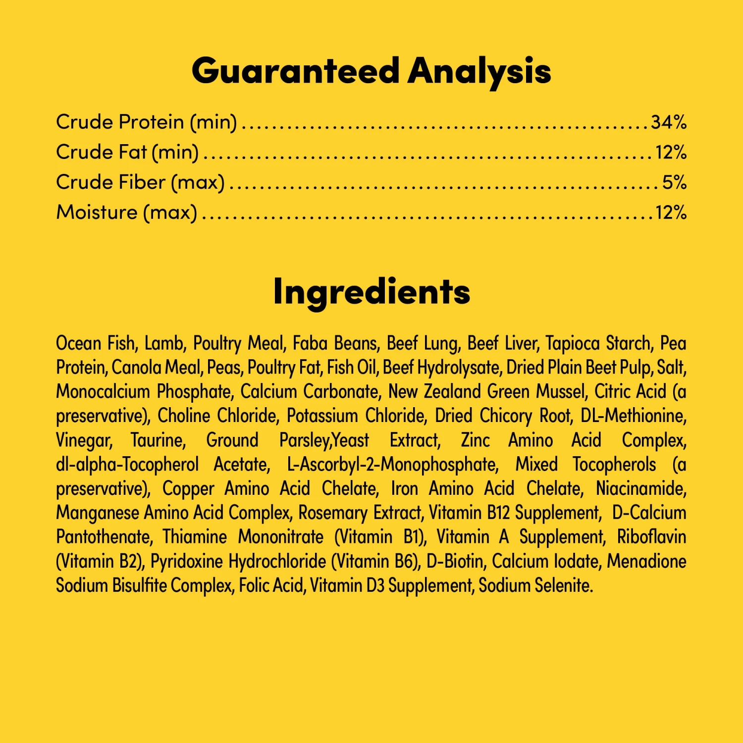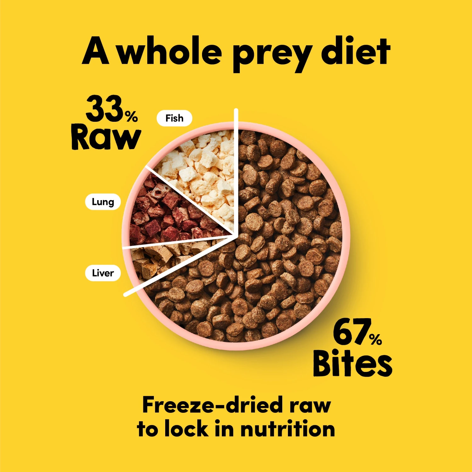 A tasty blend of 33% freeze-dried raw ocean fish and beef organs, combined with 67% high protein meat bites. A safe and easy way to add the natural goodness of raw ocean fish and beef organs