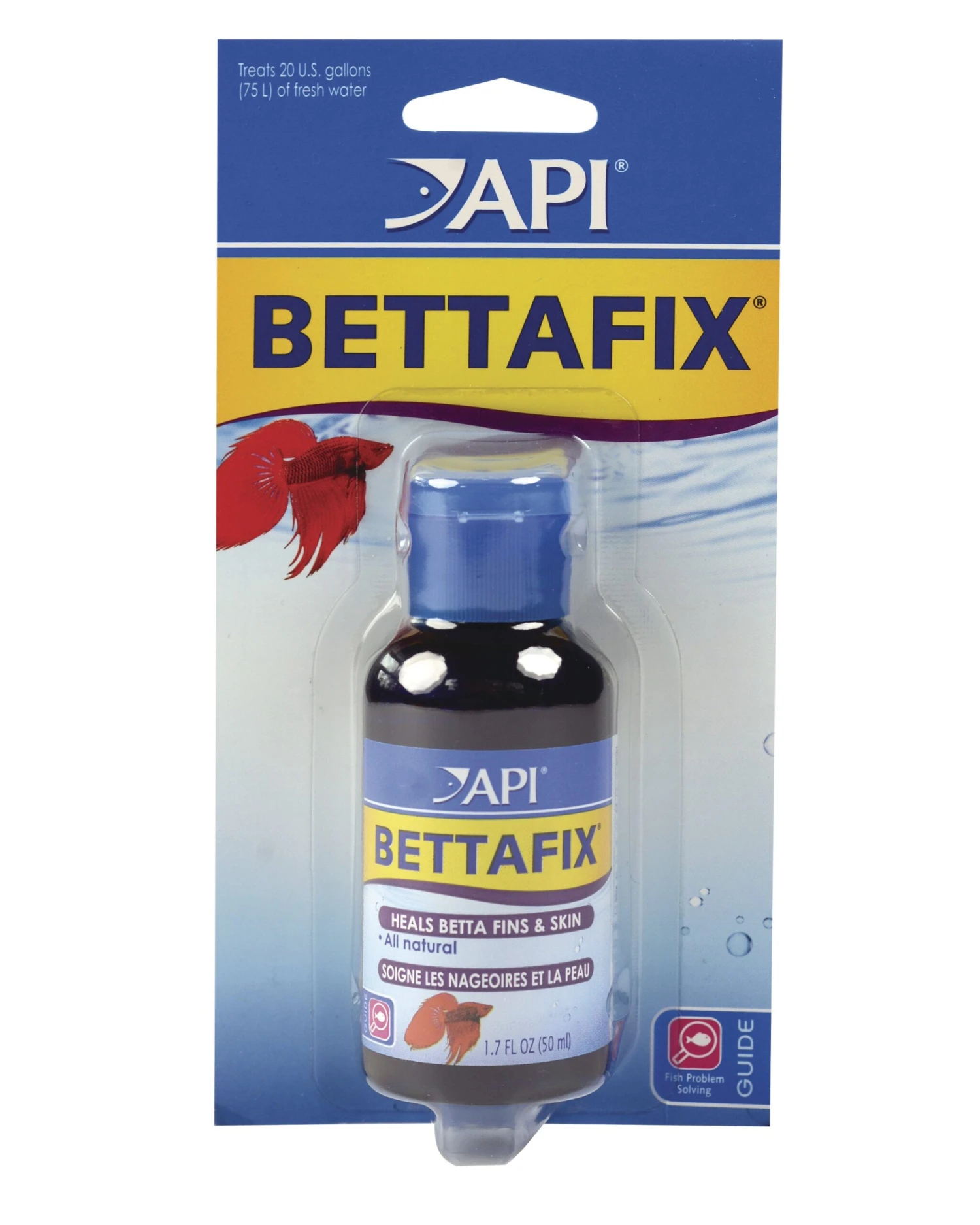 API Bettafix is an all-natural, antibacterial fish remedy for Bettas that should be used whenever your Betta exhibits signs of disease, such as wounds, ulcers, mouth fungus, fin & tail rot, slimy patches, and cottony growths. API Bettafix Remedy aids in healing damaged tissue as a result of handling, netting, and fighting.