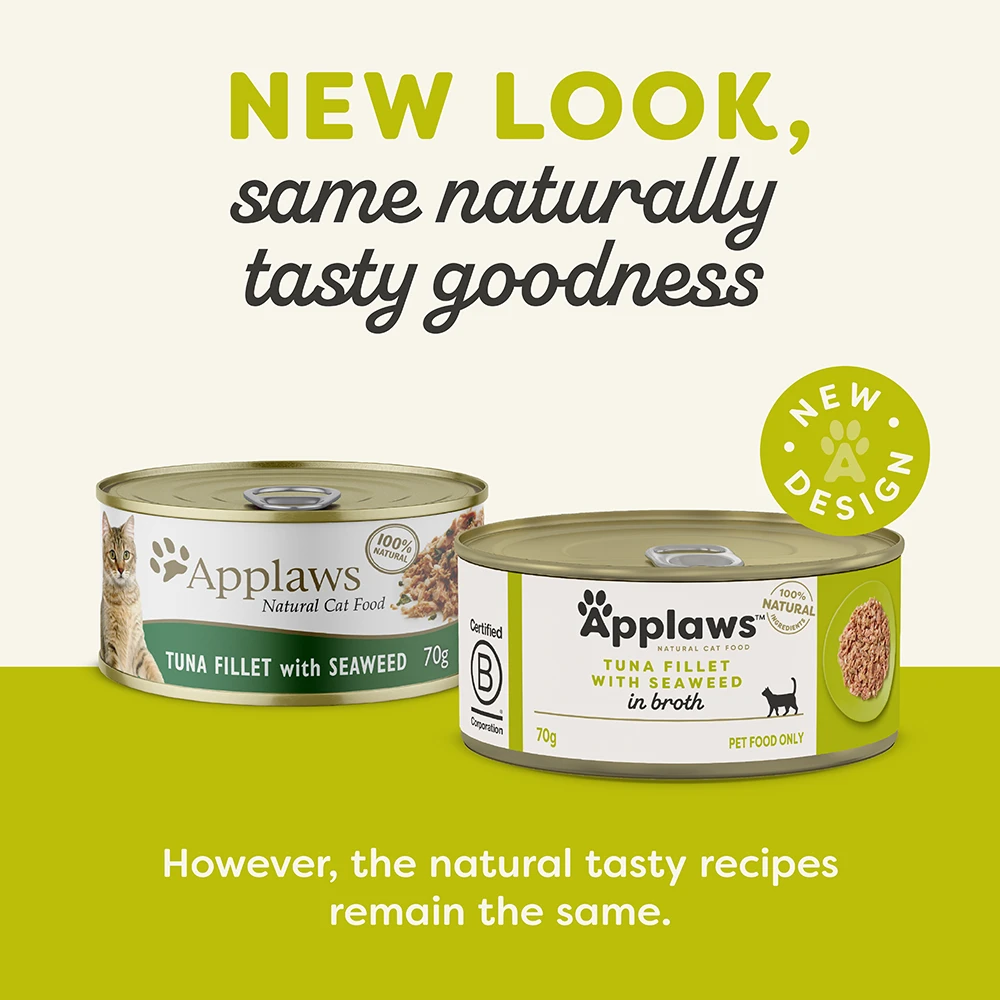 Applaws Tuna Fillet with Seaweed in Broth Can contains nothing more than the ingredients listed and is a natural complementary pet food for adult cats.