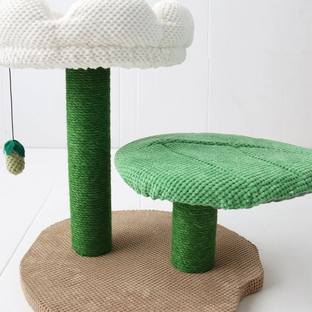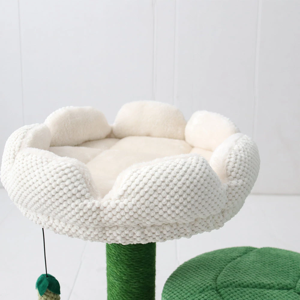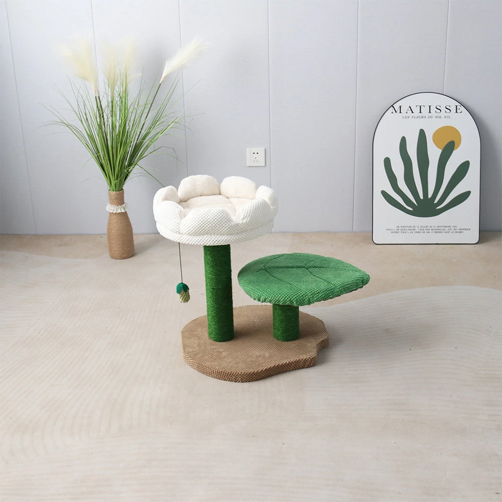 • Sisal Scratchers: Two scratching posts, including a camellia-topped post and a leaf-shaped one, satisfy scratching instincts while protecting your furniture.