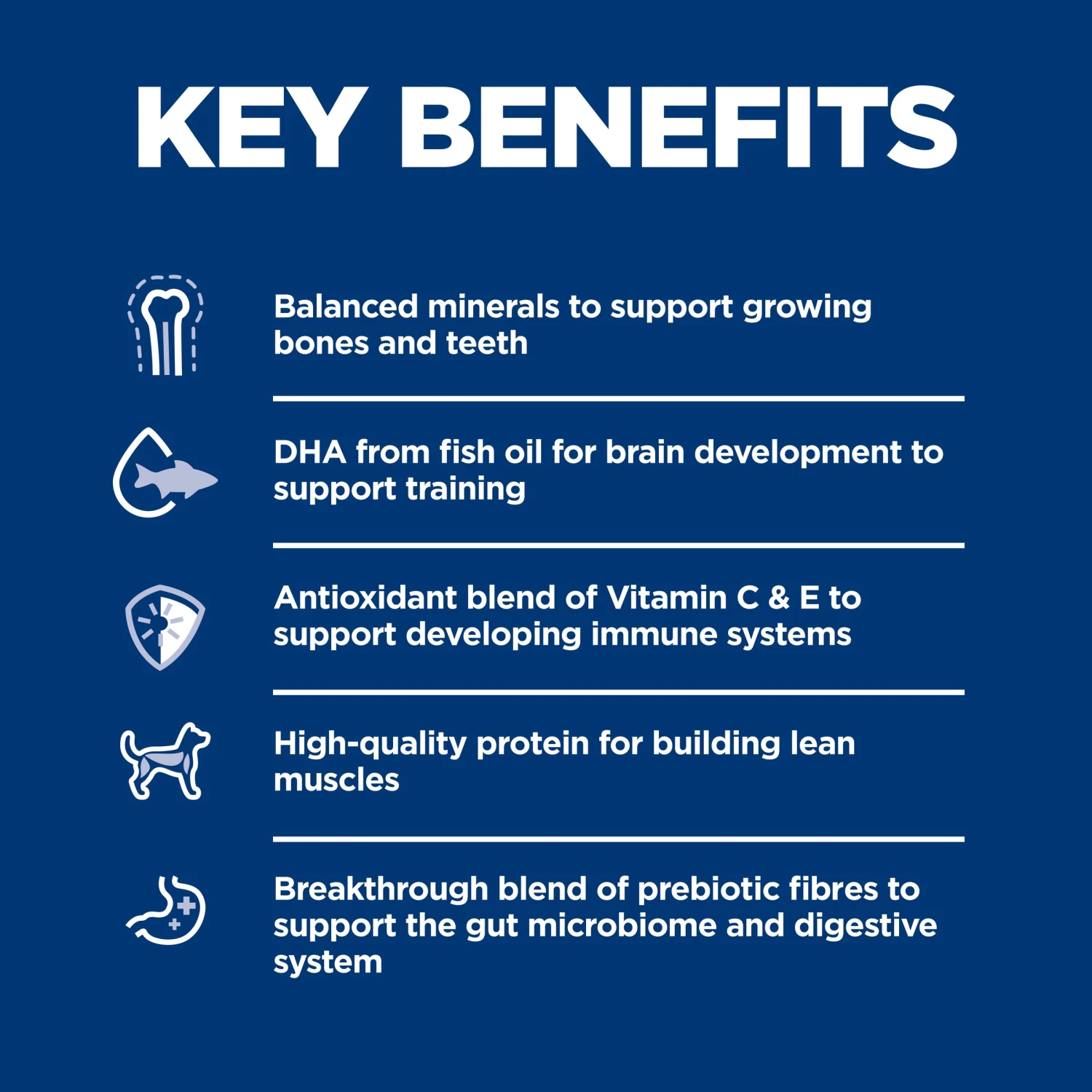 Hill’s Science Diet Puppy dry food is rich in flavour & carefully formulated with vital nutrients to support 5 essential building blocks for lifelong health, so they get their best start in life & grow to their full potential.