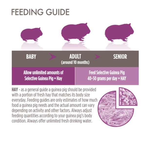 Selective Guinea Pig food, recommended by vets, offers a balanced diet with natural ingredients like dandelion and fennel. High in fibre for healthy teeth and tummies, it also contains added vitamin C for optimal health. This Guinea Pig food includes linseed, rich in omega-3, to support coat shine, thickness, colour intensity, and healthy skin.